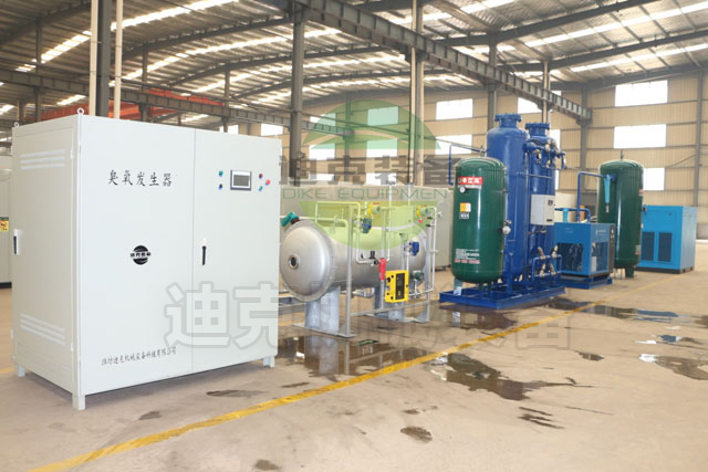 2:臭氧制備及控制系統(tǒng),前端輸送來的90%以上純度的氧氣經(jīng)過減壓閥組的作用,進入到臭氧發(fā)生器的放電體內(nèi),臭氧發(fā)生器的放電體材質(zhì)304不銹鋼,外電極采用316L材質(zhì)的不銹鋼,絕緣介質(zhì)采用進口石英材質(zhì),經(jīng)過精密軋制,管密度均勻,經(jīng)過30000V高壓的耐壓實驗,絕緣強度保障設備的安全運行,內(nèi)外電極雙間隙放電,保證了臭氧放電的轉(zhuǎn)化率,風冷+水冷的雙冷卻模式保障臭氧產(chǎn)量和濃度連續(xù)不間斷工作的穩(wěn)定,精準控制的各種閥門采用ESG頂級品質(zhì),氣體流量儀表采用臭氧專用定制的渦街流量計,密封采用四氟材料,配備精準的在線濃度檢測儀,實時傳輸產(chǎn)出臭氧的濃度,與渦街流量計傳輸?shù)絇LC信號結(jié)合實時顯示臭氧產(chǎn)量,濃度,流量等參數(shù),氧氣在高壓逆變器的作用下,高頻高壓產(chǎn)生高純度的臭氧,臭氧濃度可以高達10WT%,完整體系的運作保證產(chǎn)出的臭氧流量產(chǎn)量恒定,壓力可調(diào),最高可以到0.1mpa.